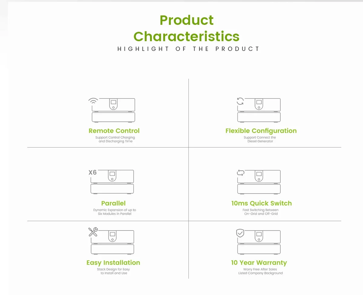 Parallel Capacity | 1-6 units(Max .60kw) | ||||