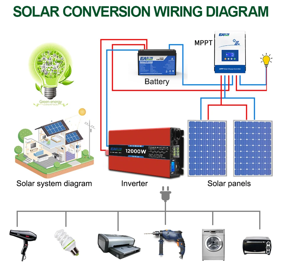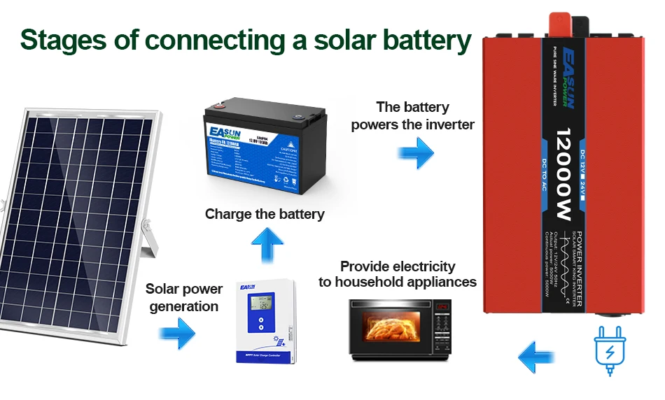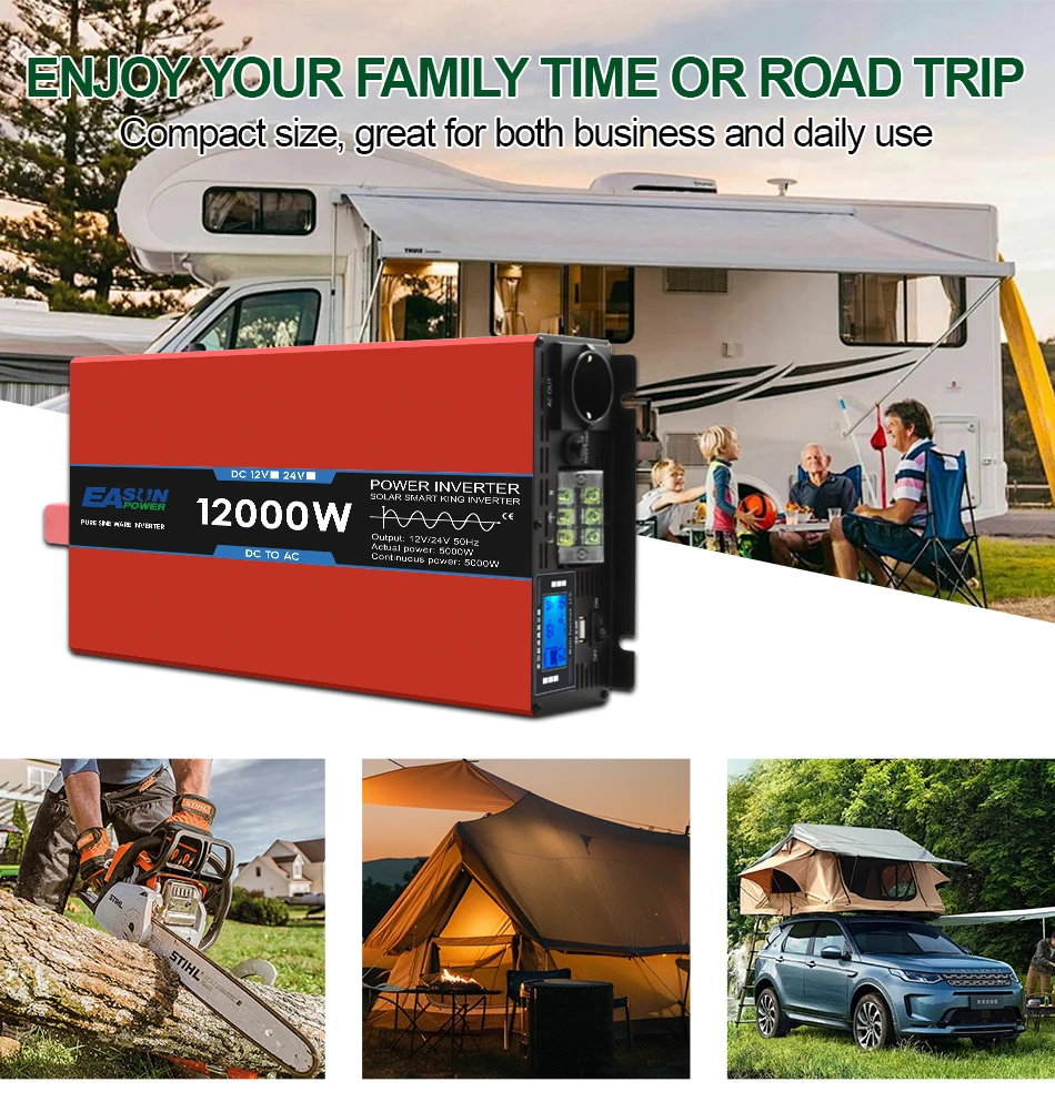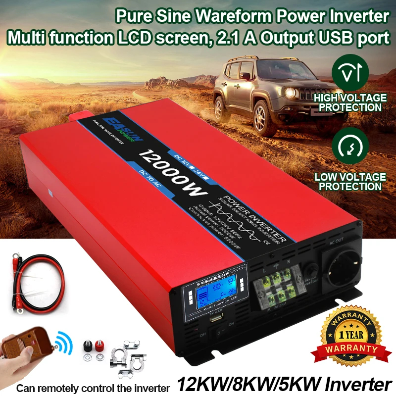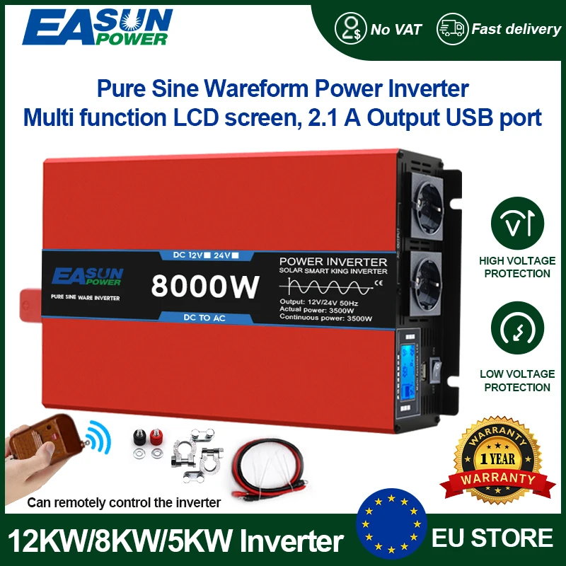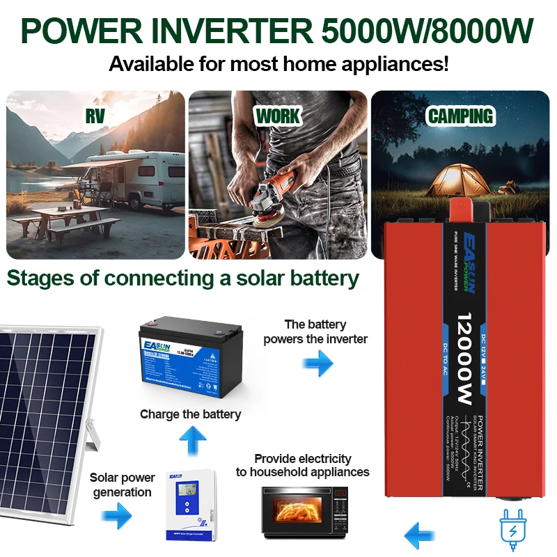 12kW 8kW 5kW EASUN Pure Sine Wave Inverter Power DC 12V 24V To AC 220V Voltage 50/60HZ Converter Solar Car Inverter With LED
