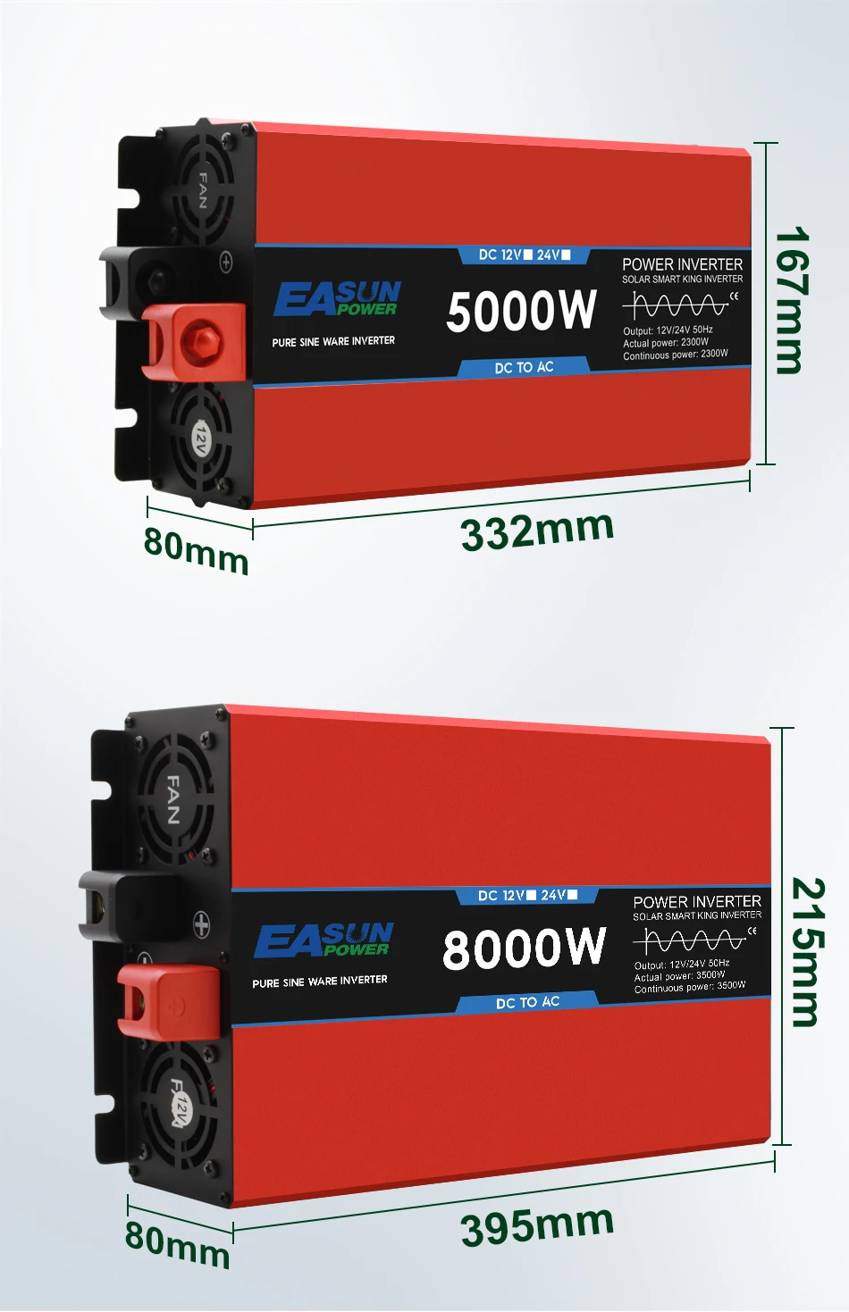332*167*80mm(5000W)/395*215*80mm(8000W)/470*217*80mm(12000w)