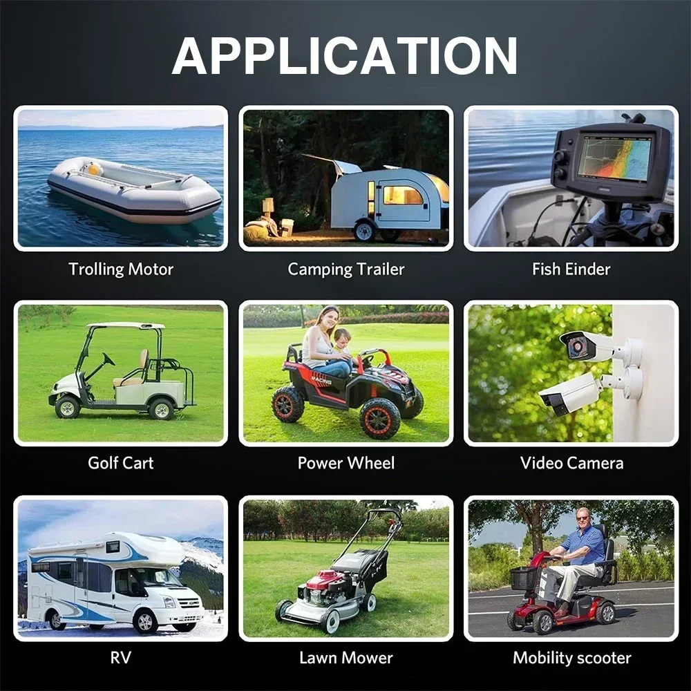 Electric cars, electric buses, golf carts/electric bicycles, scooters, RVs, AGVs, Marines, coaches, caravans, wheelchairs,