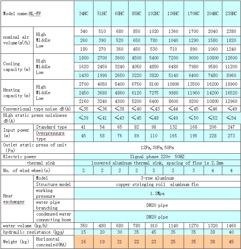 type锛�20Pa-30Pa锛夛紝input power improves 1.5 times than the same grade fan coil with no overpressure.