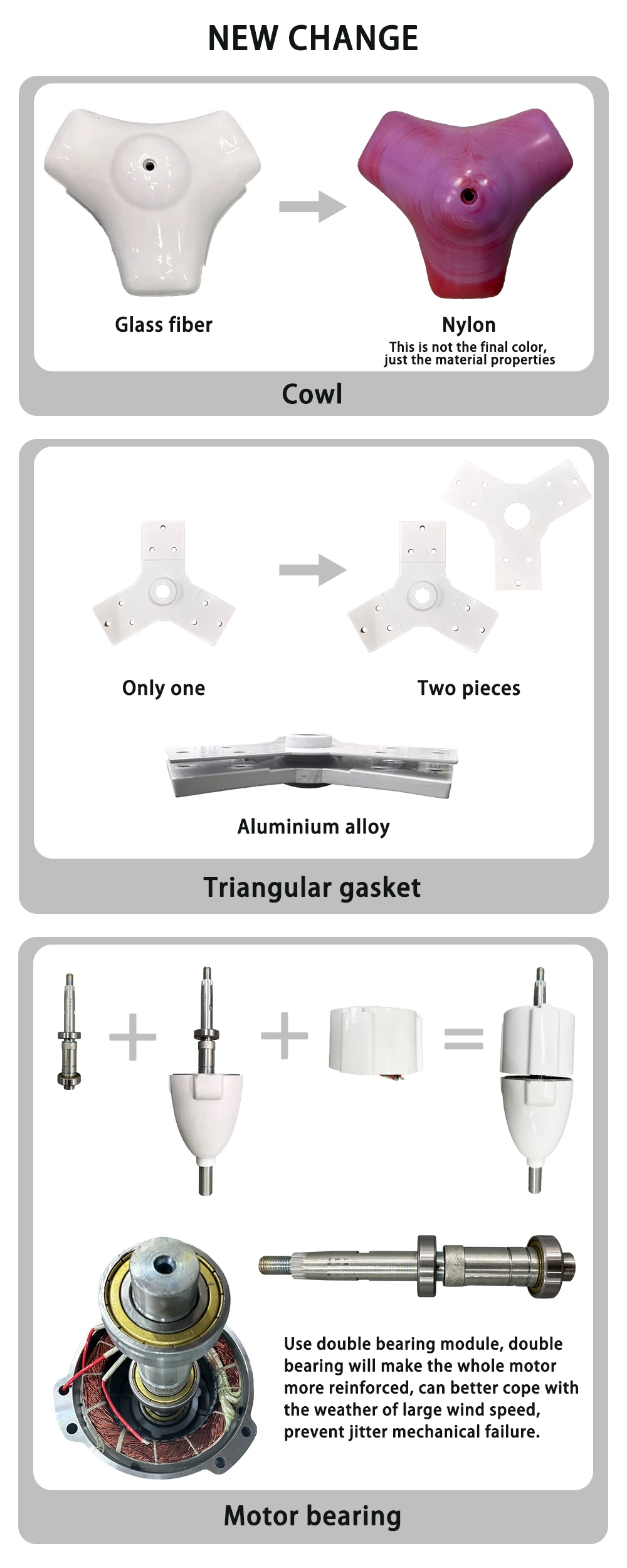 4.Blades using new art of precision injection molding,matched with optimized aerodynamic shape and structure which enhance the wind energy utilization and annual output.
