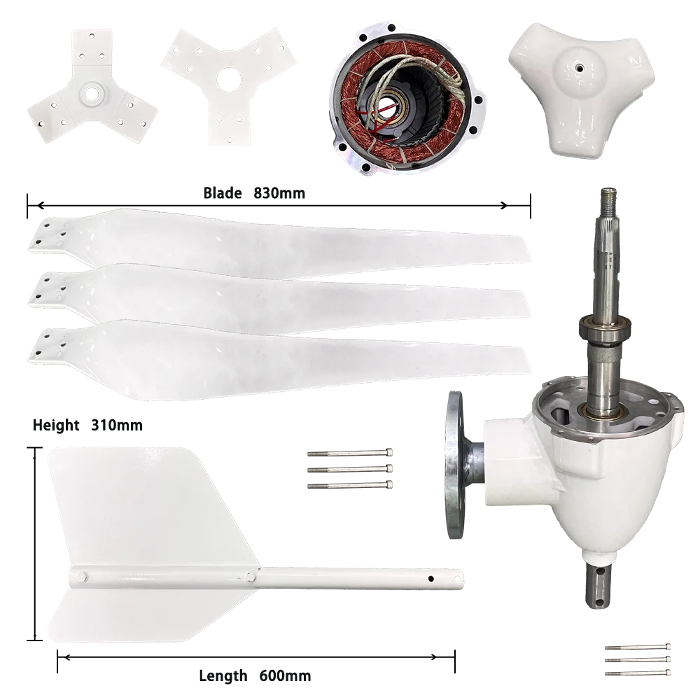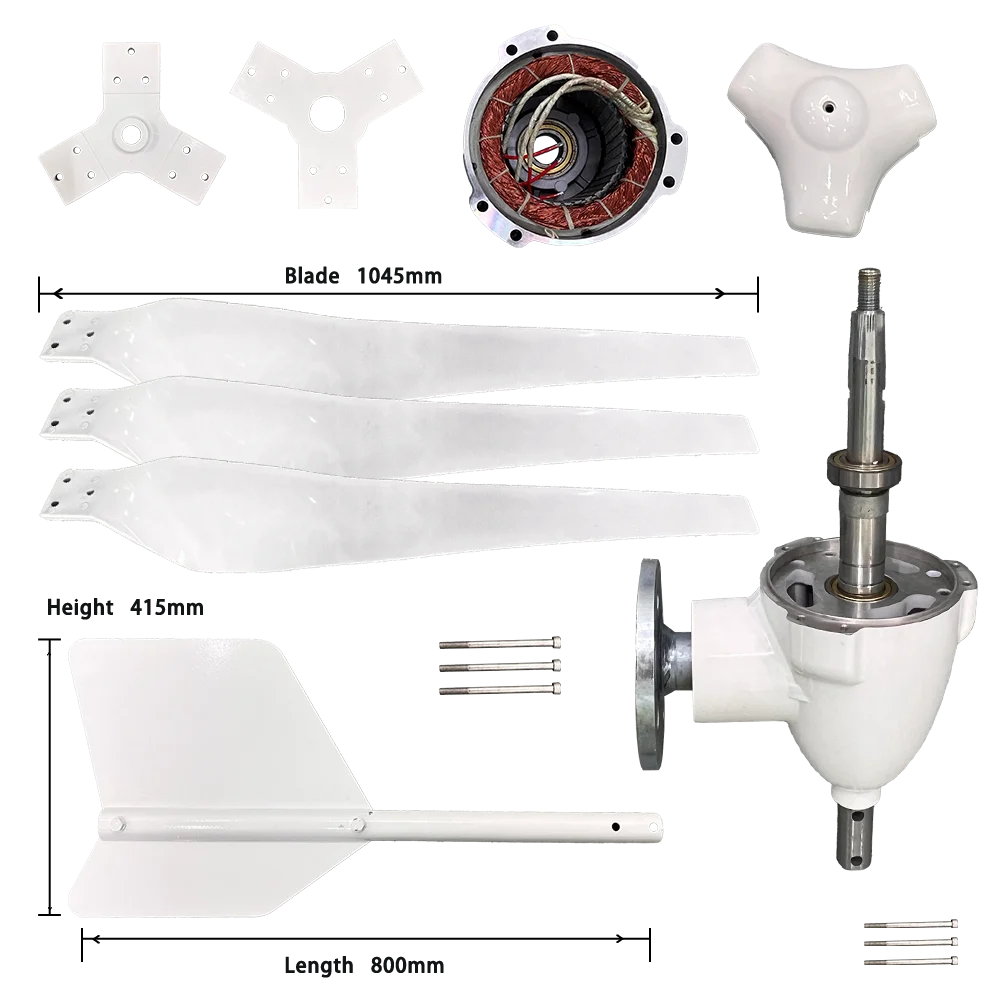 1.wind turbine 1set (hub,tail,blades,generator,hood,bolts and nuts)