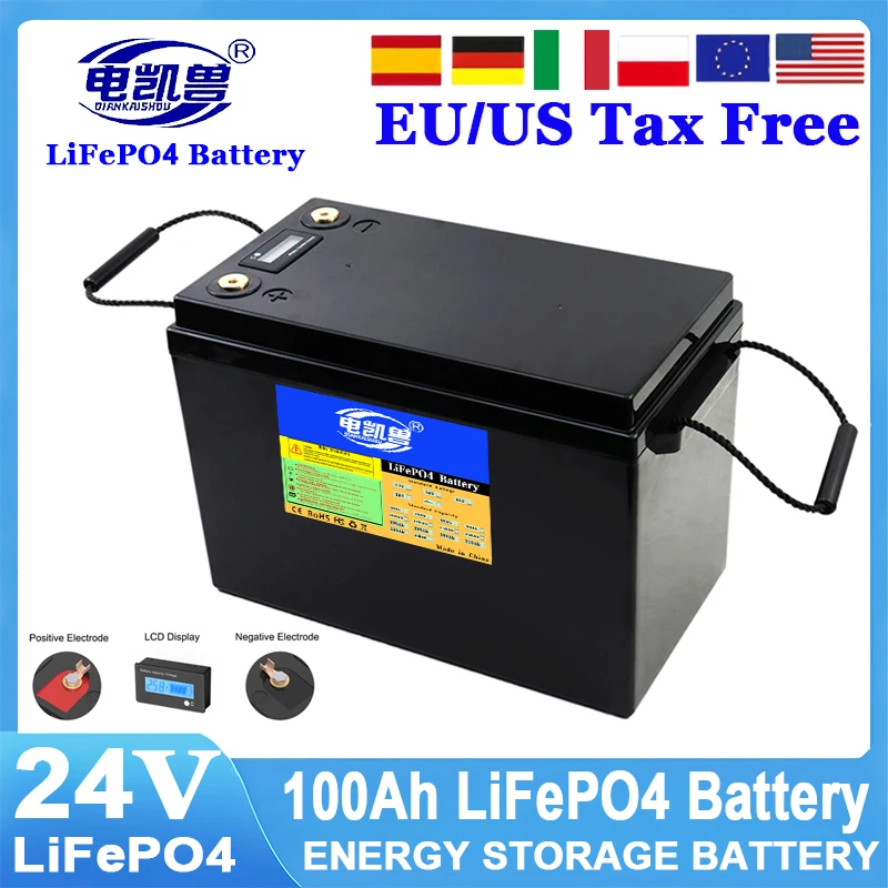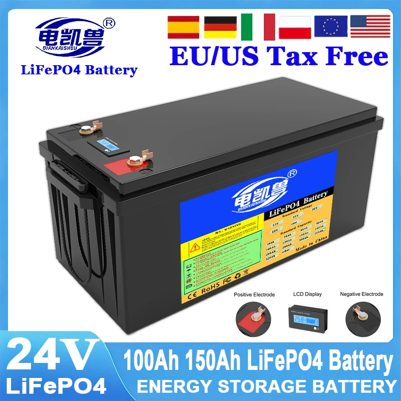 Brand-new 24V 100Ah 150Ah 8 Strings LiFePO4 Battery Energy storage battery for Solar Energy Camping Off-Road Golf cart Tax Free