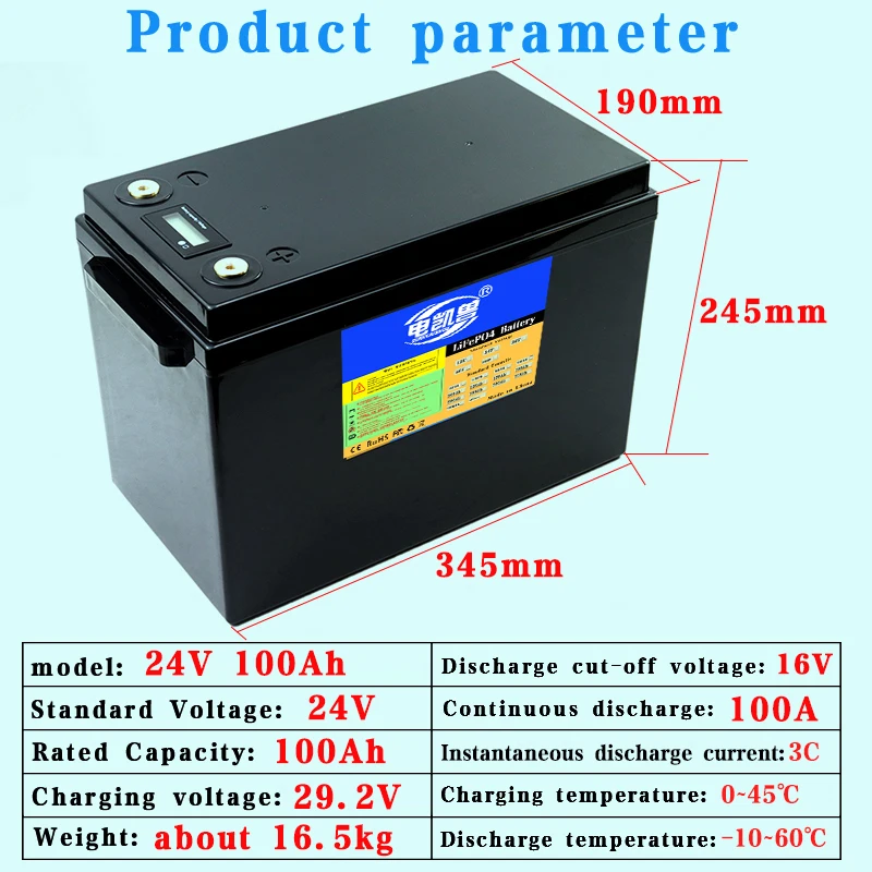 24V 100Ah LiFePO4 battery pack Solar system inverter RV marine deep cycle 4000 times BMS 2400W high power