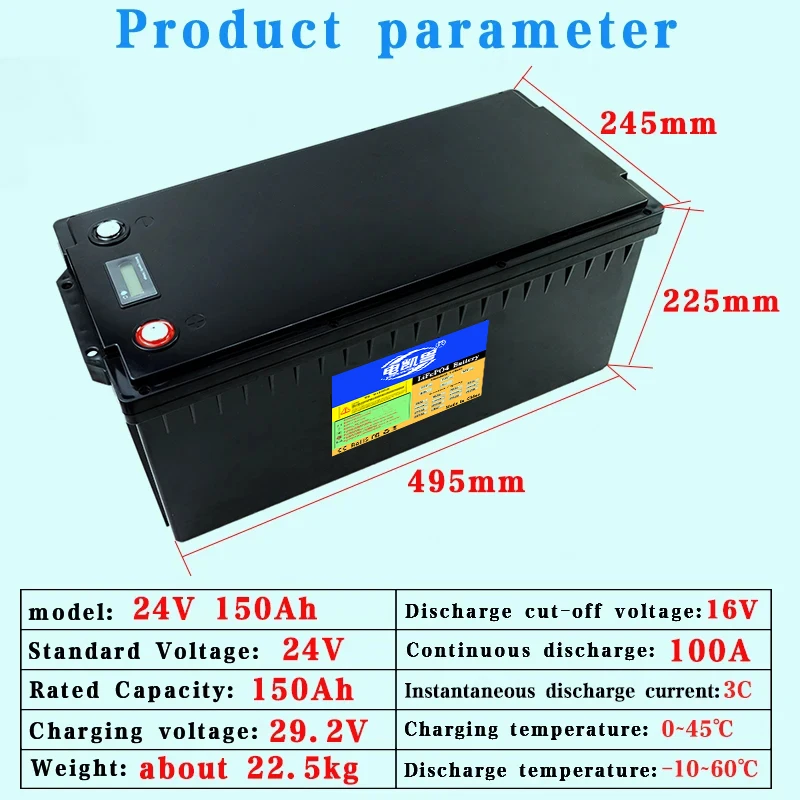 24V 150Ah LiFePo4 Battery Built-in BMS Lithium Iron Phosphate Cells For Replacing Most of Backup Power Home Energy Storage
