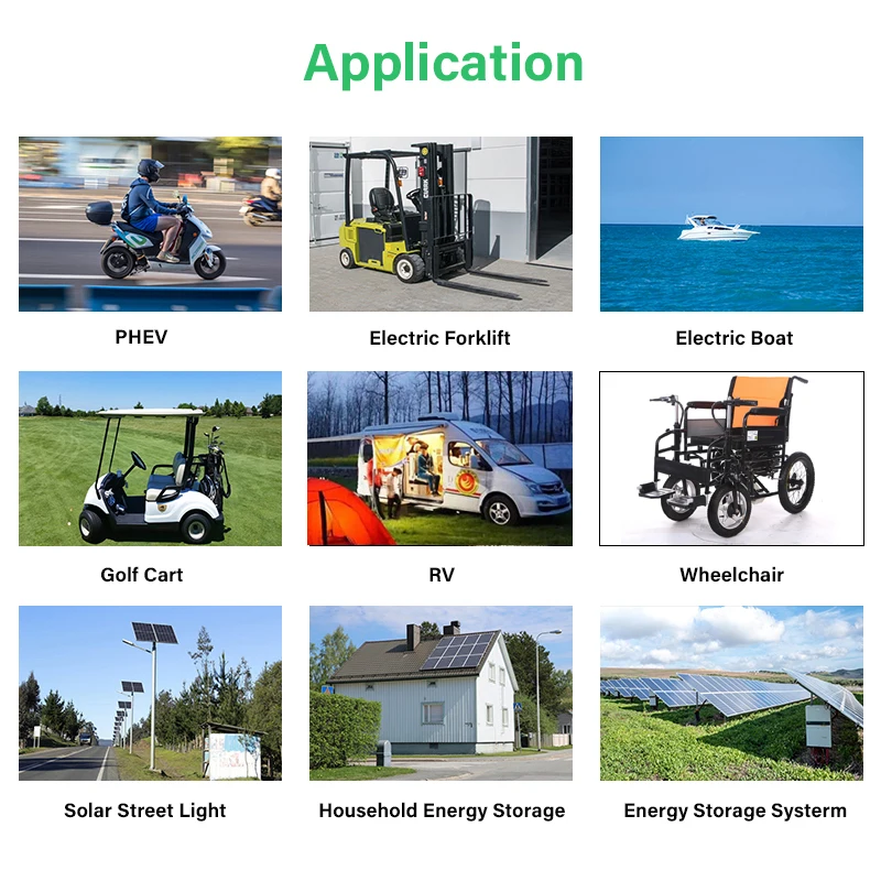 Electric cars, electric buses, golf carts/electric bicycles, scooters, RVs, AGVs, Marines, coaches, caravans, wheelchairs,