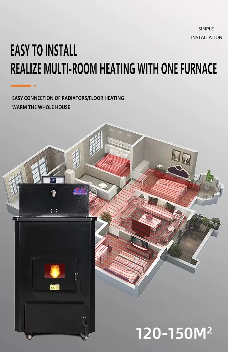 Wood pellet water heating stove has the advantages of quick heating, high thermal efficiency, easy to install, also higher comfort for heating.