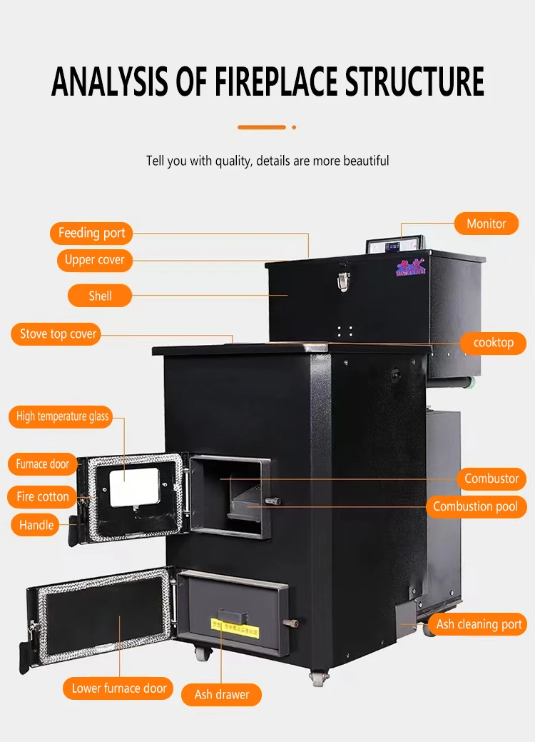 15kW water heating fireplace for cooking and warming