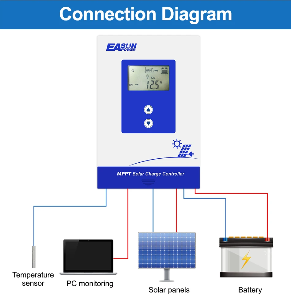EASUN 20A 30A 40A 60A MPPT Solar Charge Controller Lead Acid Lithium Battery Regulador 12V 24V Solar Controller LCD Displays