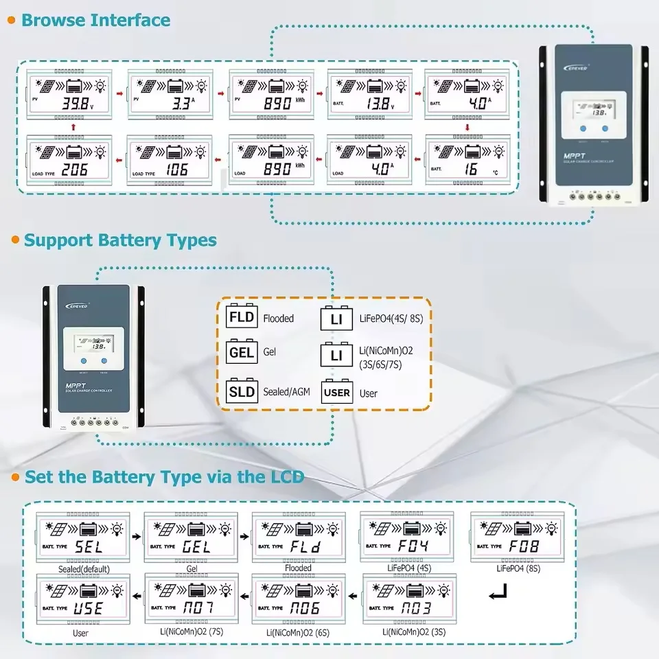 EPever MPPT 40A 30A 20A 10A Solar Charge Controller 12V 24V Auto Solar Panel Regulator Solar Battery Charger Tracer3210AN 4210AN