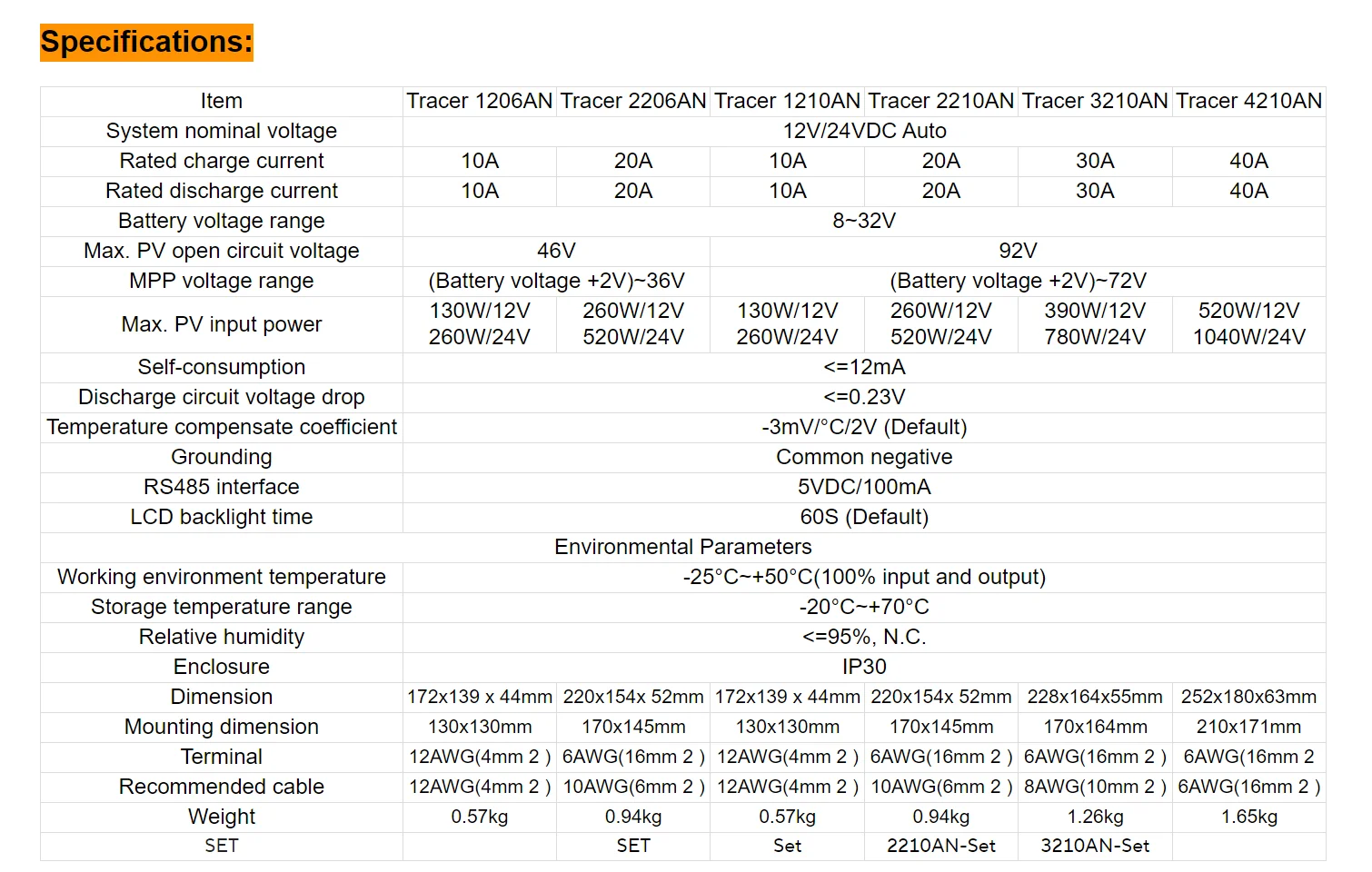 The Tracer AN series. Based on common negative design and advanced MPPT control algorithm, with LCD displaying running status, this product is artistic, economical and practical. Improving the MPPT control algorithm further, Tracer AN series can minimize the maximum power point loss rate and loss time, quickly track the maximum power point of the PV array and obtain the maximum energy from solar modules under any conditions; and can increase the ratio of energy utilization in the solar system by 10%-30% compared with a PWM charging method. The limitation function of the charging power and current and reducingcharging power function automatic improve the stability which works even connecting oversize PV modules and in high temperature, and increase the professional protection chip for the communication port, further improving the reliability and meeting the different application requirements.