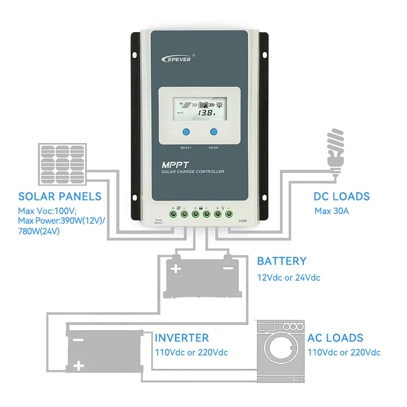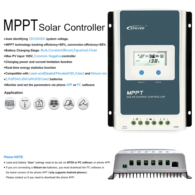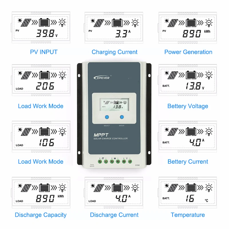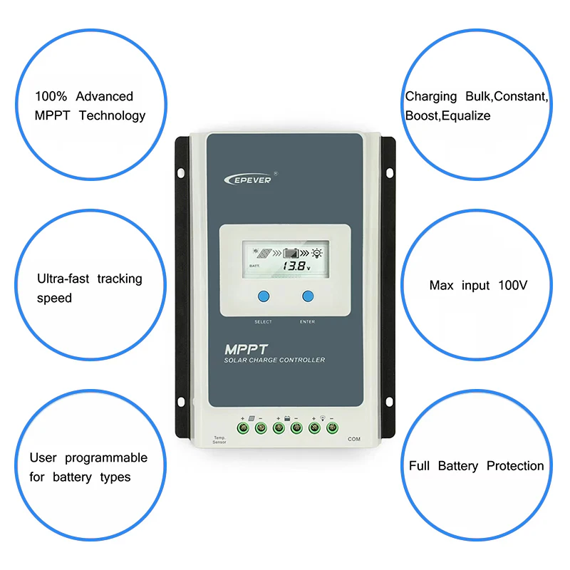 EPEVER Tracer 10A 20A 30A 40A MPPT Solar Charge Controller 12V 24V Auto Solar Panel Regulator With LCD Display Max PV 60V 100V
