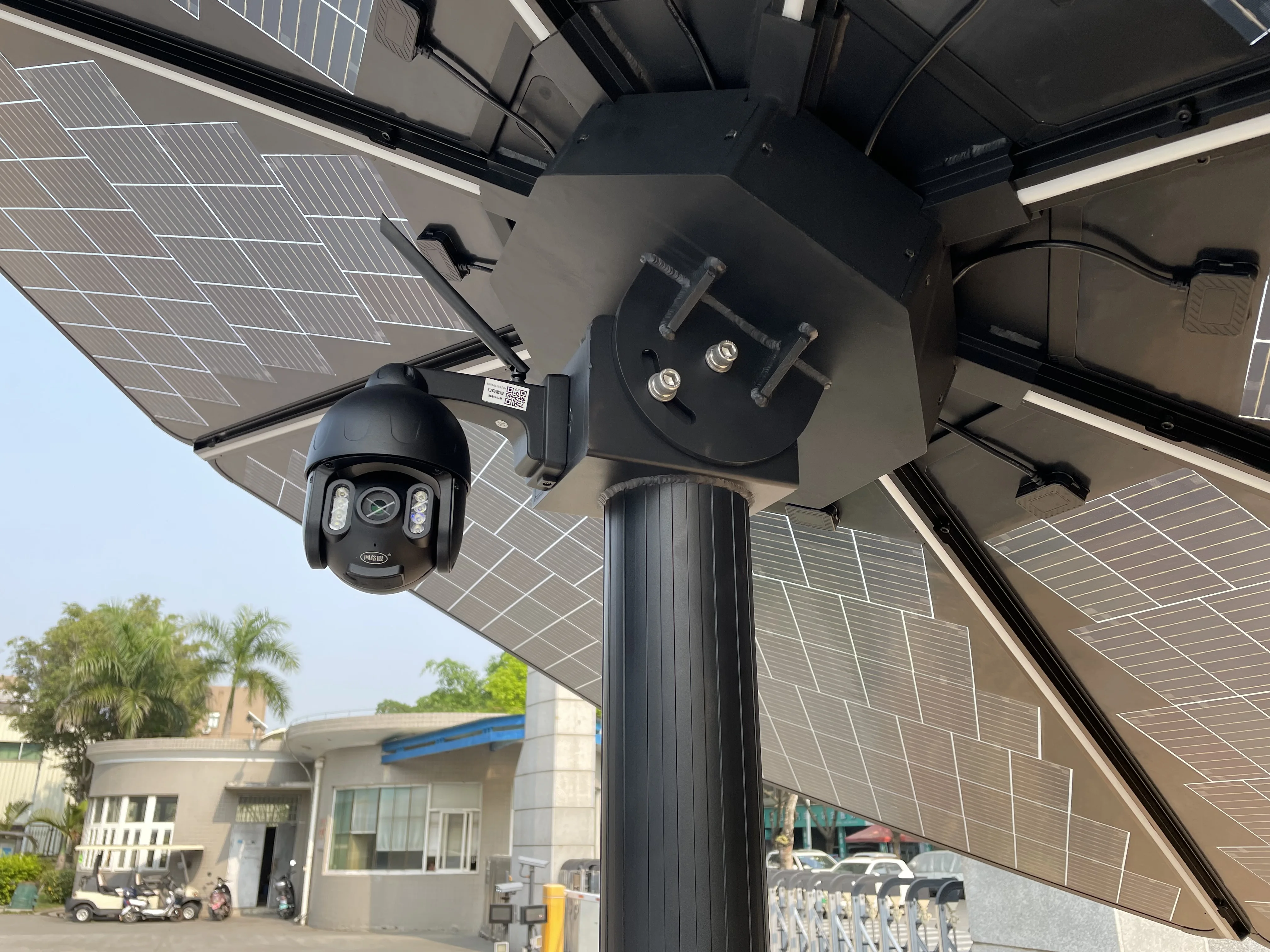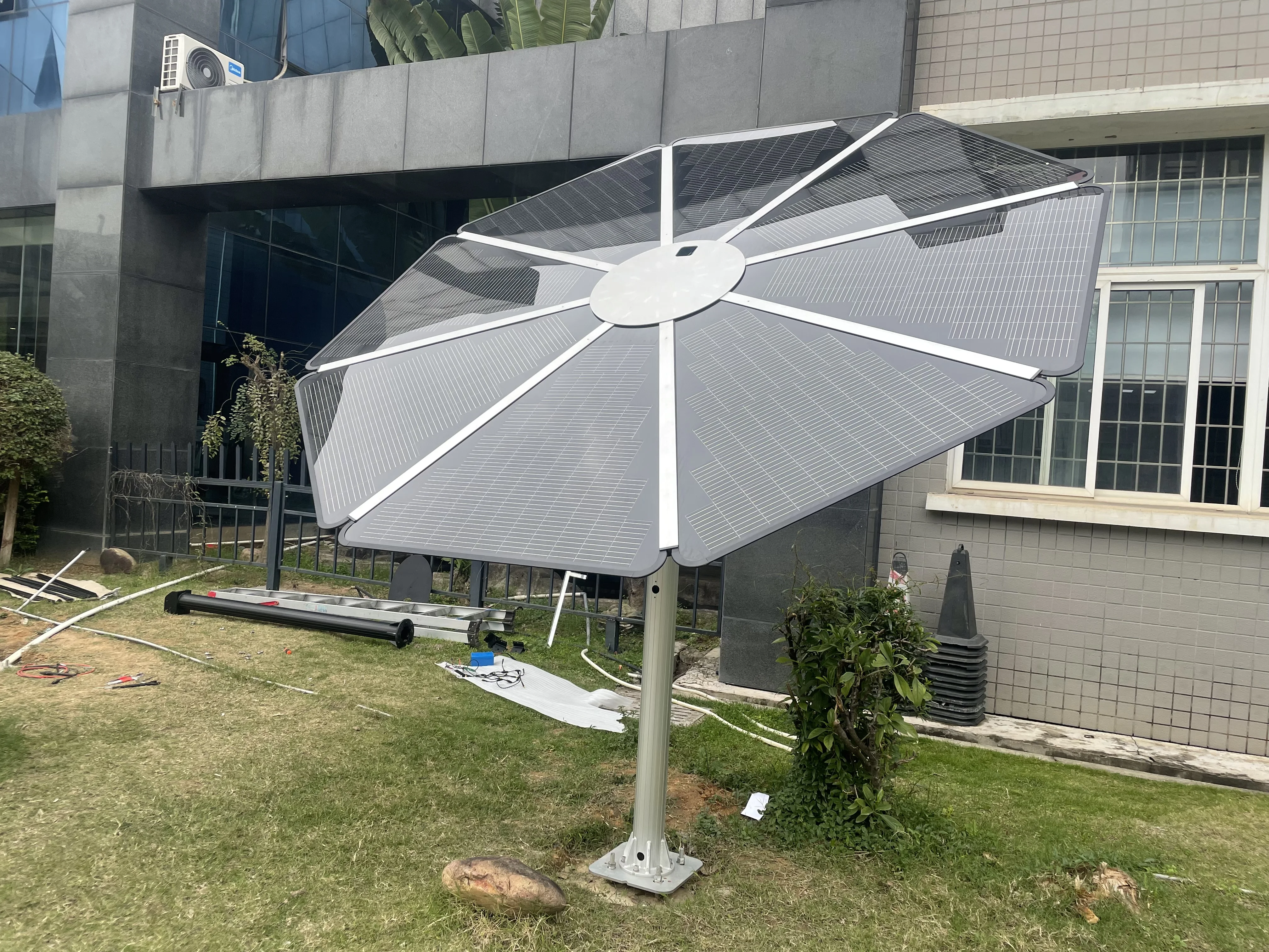 This product is a solar power supply system designed like sun-flower bionics. It integrates solar power generation, energy stor-age, inverter and control. It can be used in park, square andscenic spot, etc. Charging for electric car.