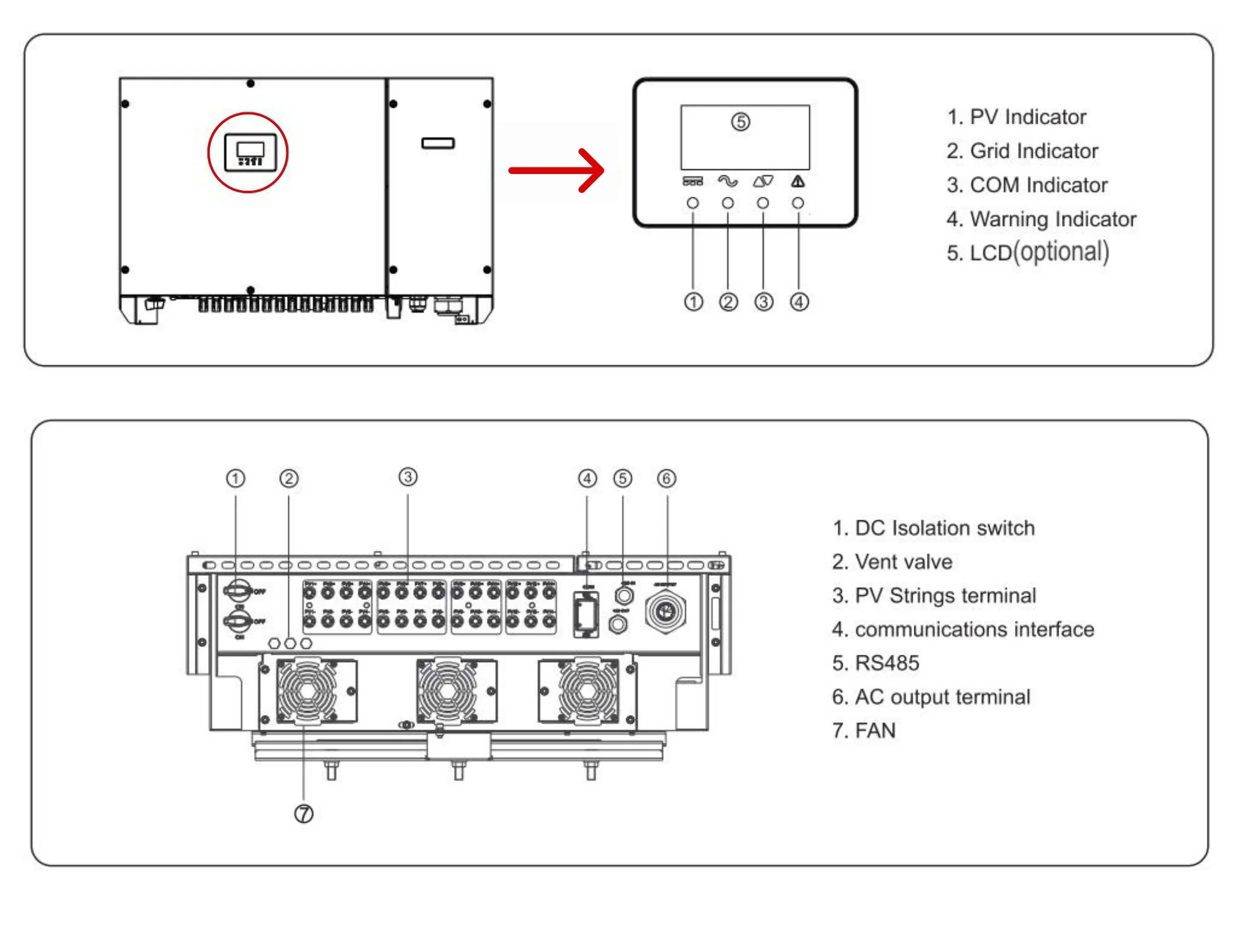 3.High Reliability: Fan Cooling; Integarted type II DC/AC SPD; APP for local setting&display