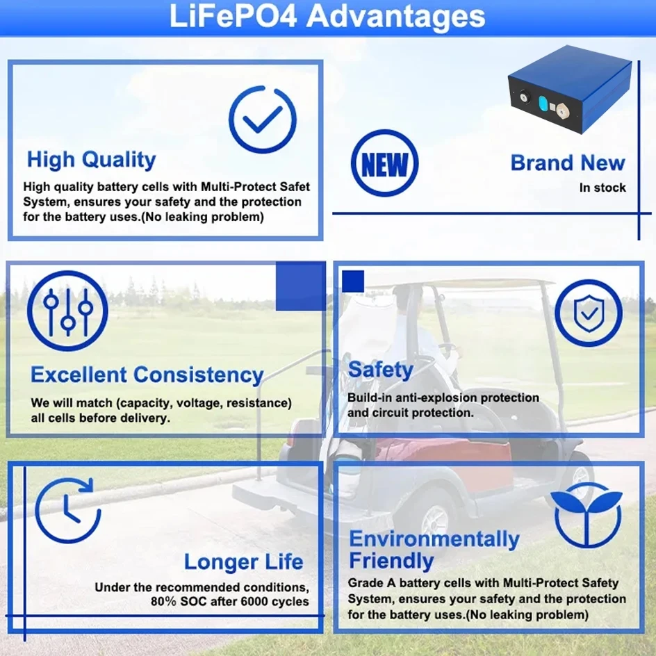 Original LiFePO4 3.2V320AhGrade A Battery Cell For 12V 24V 48V RV Golf Cart Marine Solar System4 3 2v Batterie EU US Tax free