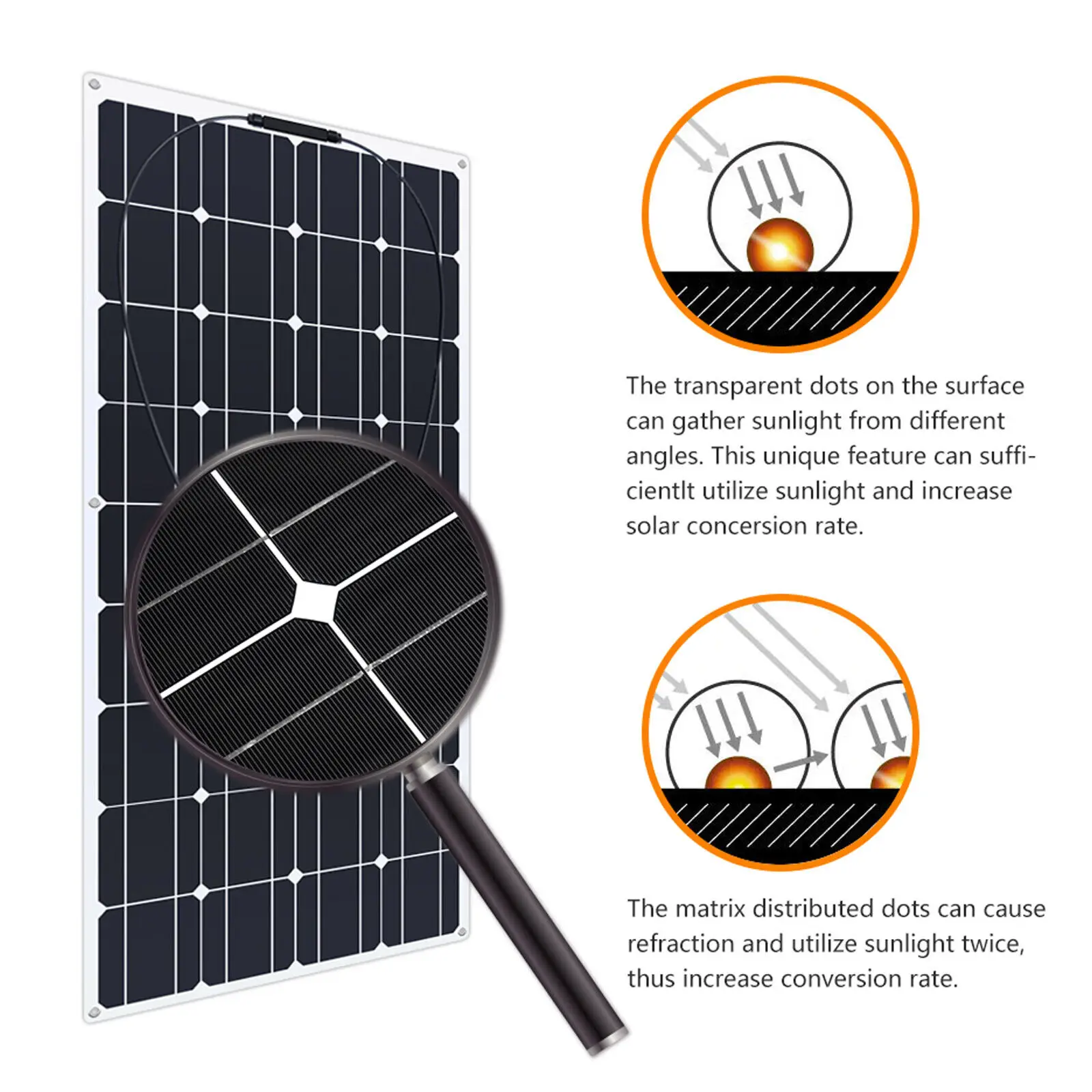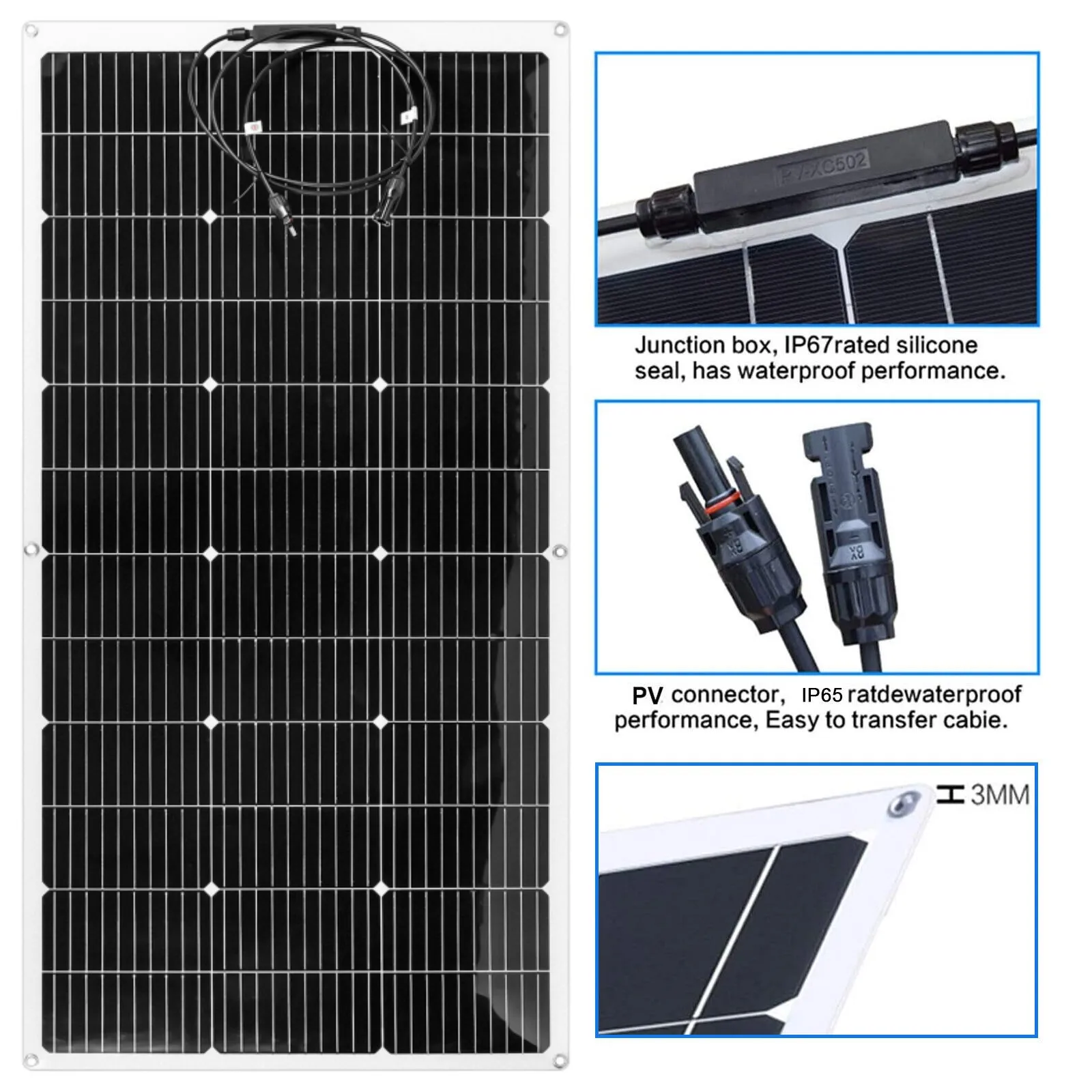 Designed with IP65 junction box, it is suitable for various daily or outdoor scenarios, such as home gardens, balconies, rooftops, RVs, yachts, trucks, trailers, buses, etc. It can be used easily and efficiently outdoors.