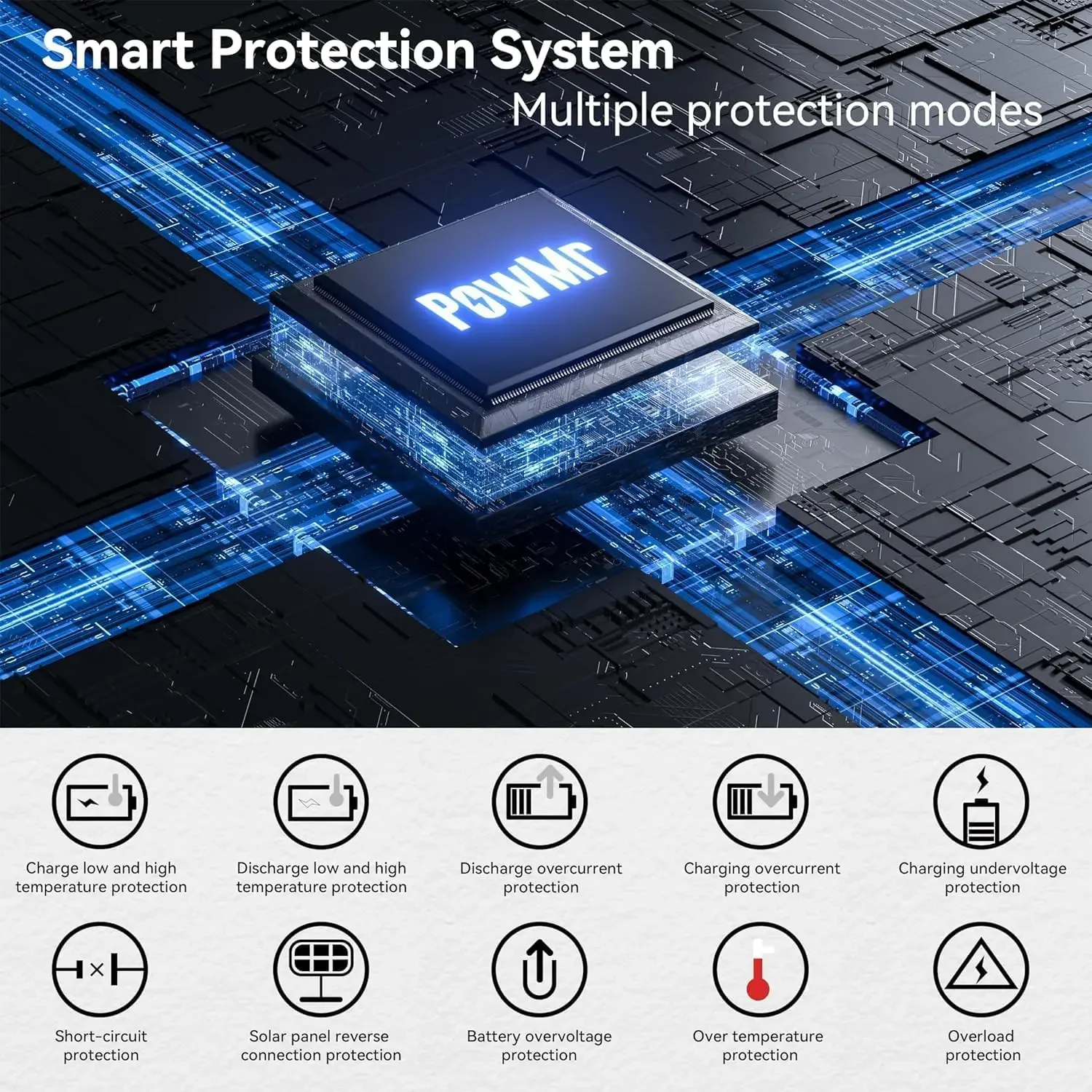 Compatible with various 24V(4.2KW) 48V(6.2KW) batteries such as AGM, Gel, Lead-acid, Lithium-ion and LiFePO4 batteries. Built-in lithium activation along with comprehensive battery protection features including short circuit protection, over/under voltage protection effectively protects battery life.