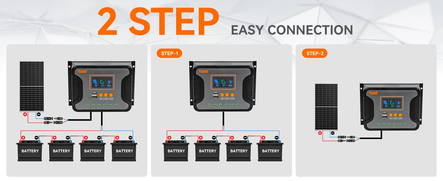 【 3-STAGE INTELLIGENT PWM Technology】The solar controller is equipped with advanced smart PWM technology with high charging efficiency, through three stages of charge modes, efficient, and safe battery charge, effectively extending the battery life; a combination of solar light control and time control, freely adjust the load enable duration. such as: Light control, Light Time control