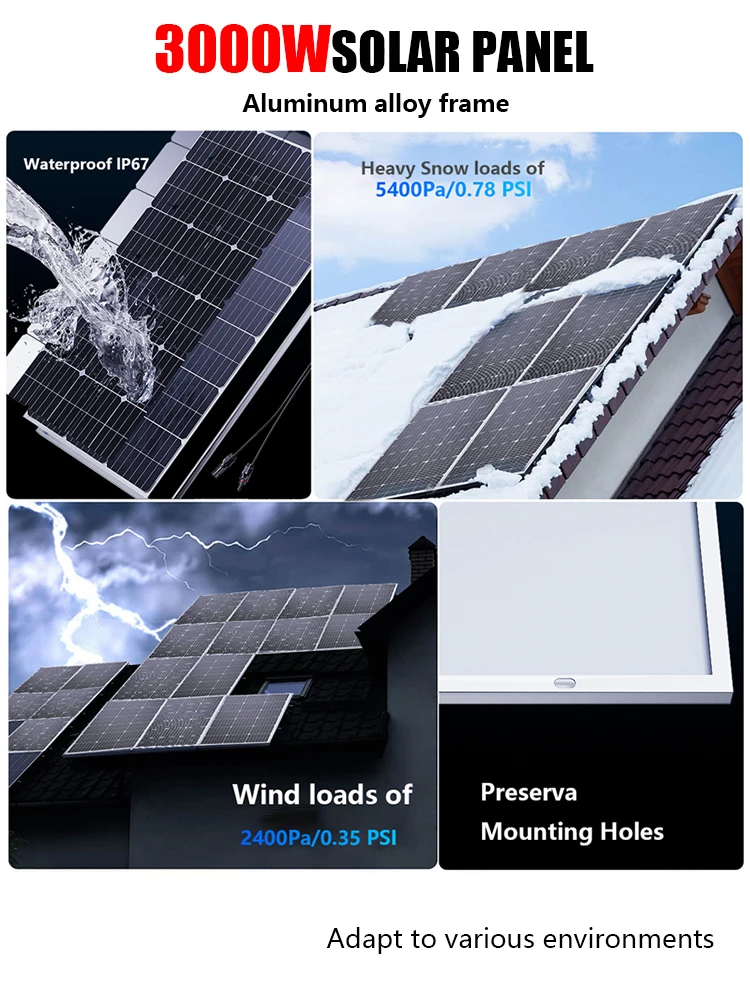 【 Excellent Performance 】: Single crystal solar panels are made of corrosion-resistant aluminum frames, which can be used for more than ten years and can withstand strong winds (2400Pa) and snow loads (5400Pa). IP65 rated terminal box and 21% high battery efficiency.