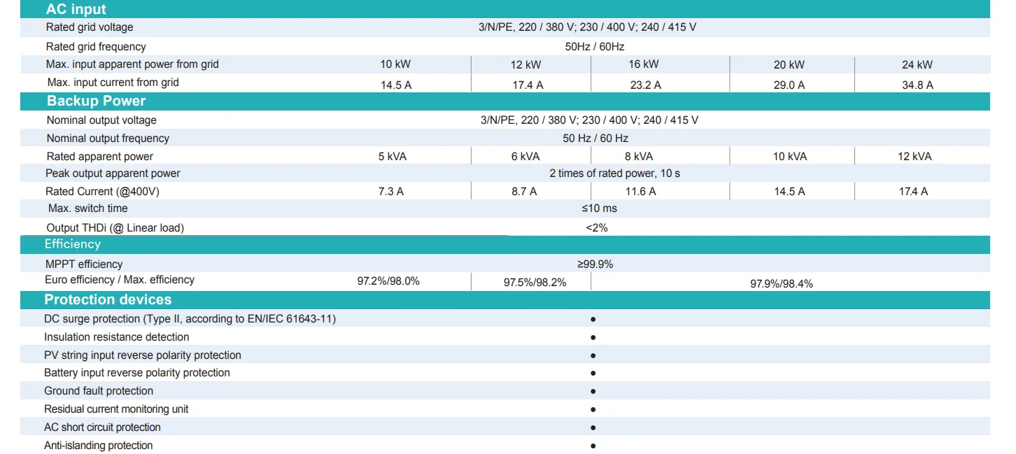 Max. apparent power | 5 kVA | 6 kVA | 8kVA | 10kVA | 12 kVA | |||||