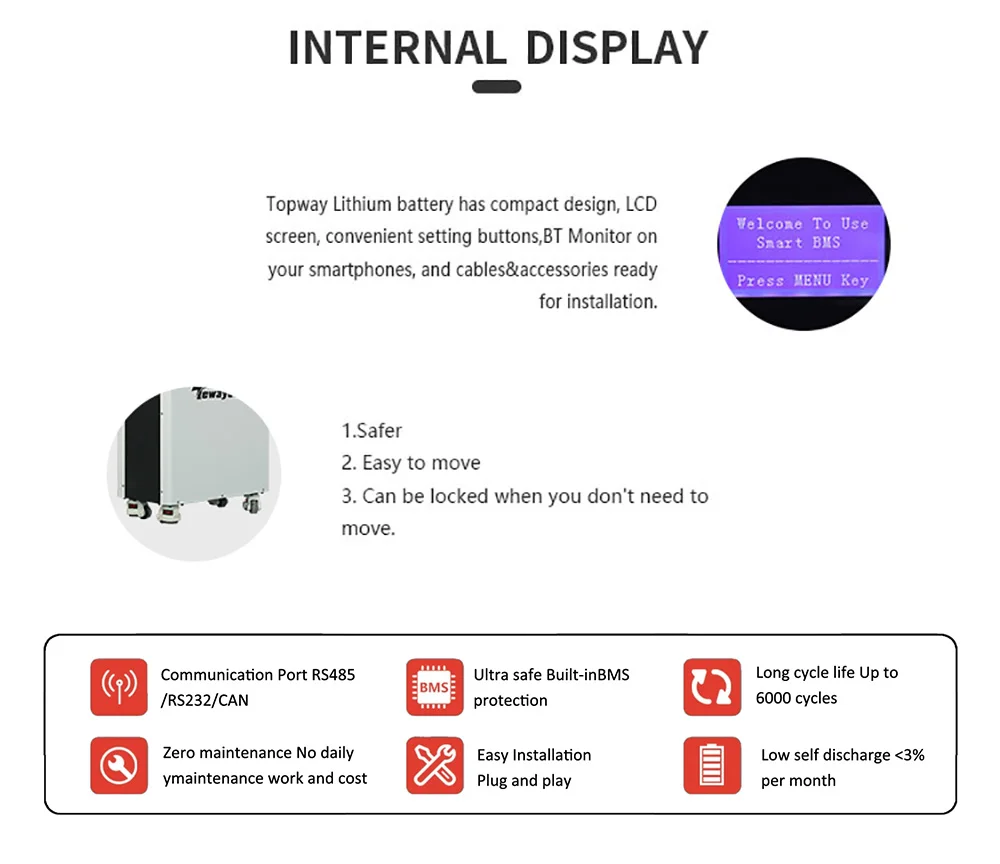 • When not in use for a long time, the battery should be stored in a cool and dry place (<35°C, 30%~50% SOC, charge and discharge once every 3 months).