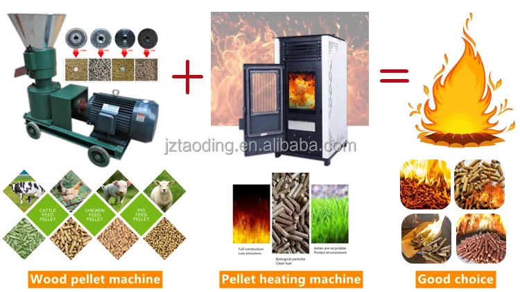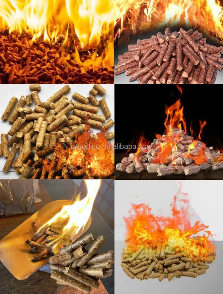 The burning pellets are made from wood, sawdust, and various types of crop straw.